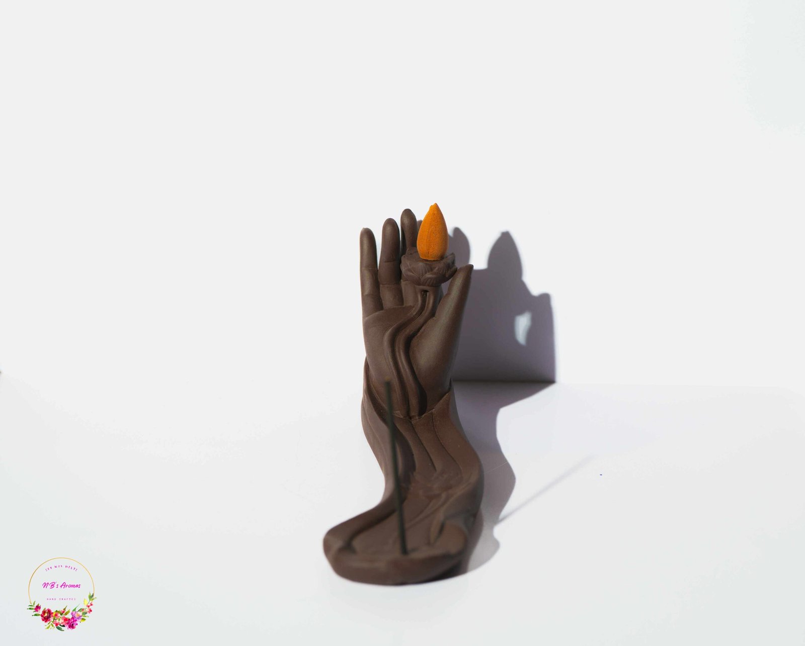 This beautifully sculpted burner channels a sense of reverence and ancient wisdom. The gentle hand holds a sacred lotus flower, symbolizing spiritual awakening. When a backflow cone is lit, the smoke descends from the lotus center, creating a peaceful waterfall effect that promotes a deep sense of mindfulness and inner balance.